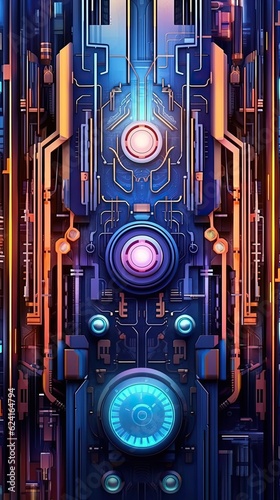 The watermark will not be included on Wall mural.: A futuristic circuit board design with neon lights and intricate patterns - colorful illustration art