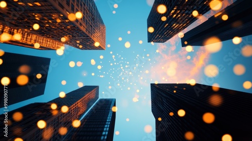 Wall mural a futuristic cityscape where buildings blend seamlessly with digital projections, blurring the line