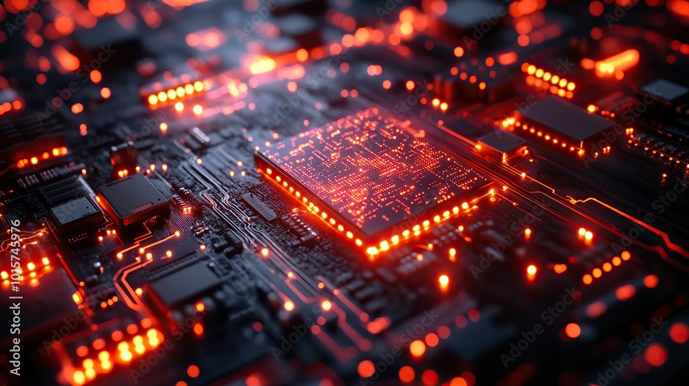 The watermark will not be included on Wall mural.: A futuristic concept of data processing within server circuit boards, with vibrant color codes and d