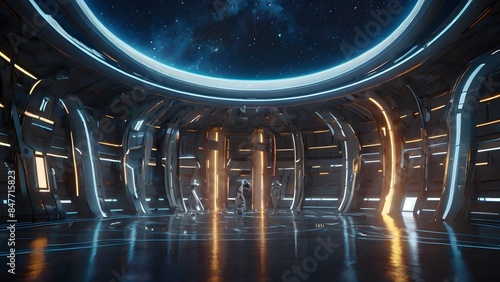 A futuristic high-tech space station filled with a mesmerizing array of glowing lights and advanced Wall mural