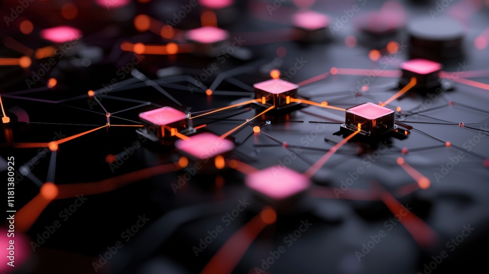 The watermark will not be included on Wall mural.: A futuristic holographic projection of a network diagram, with glowing lines and nodes representing