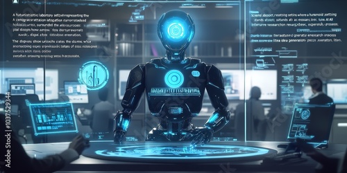 Wall mural a futuristic laboratory setting where a humanoid robot, representing the ai scientist, stands at a c - Wall murals Wall mural a futuristic laboratory setting where a humanoid robot, representing the ai scientist, stands at a c - Wall murals