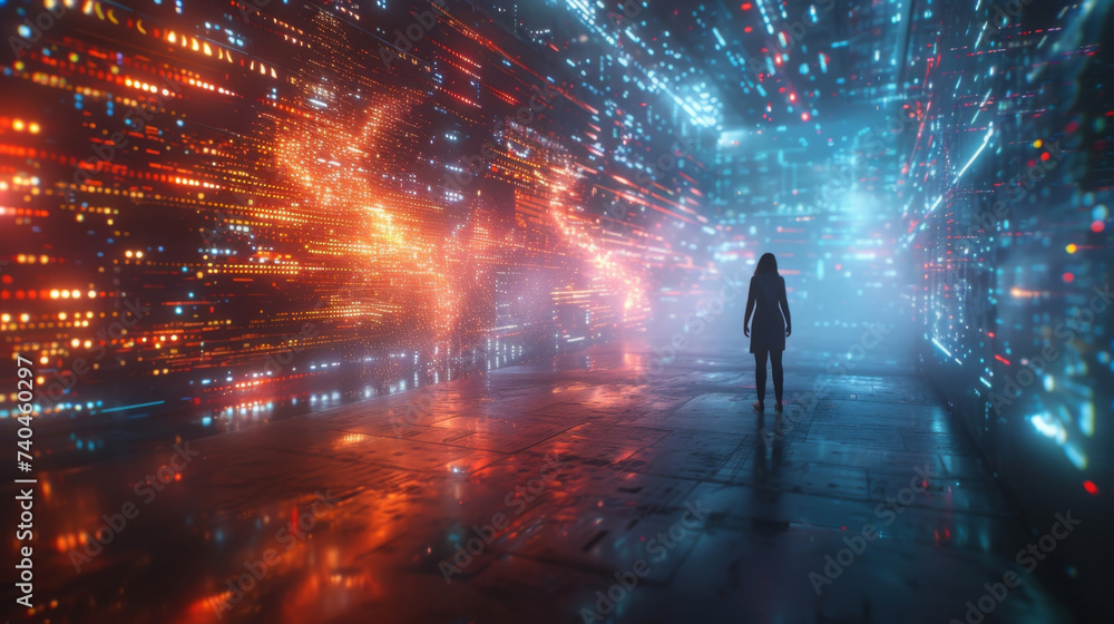 Wall mural a futuristic stock exchange floor bustling with traders and investors in a mixed reality space. virt - Wall murals Wall mural a futuristic stock exchange floor bustling with traders and investors in a mixed reality space. virt - Wall murals