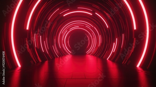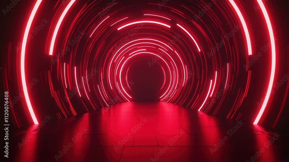 Wall mural : A futuristic tunnel illuminated with vibrant red neon lights, creating a dynamic and immersive envir