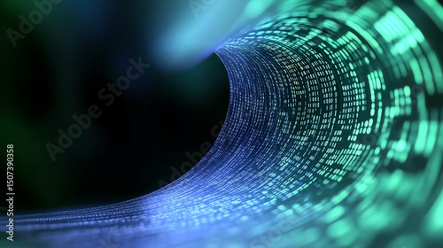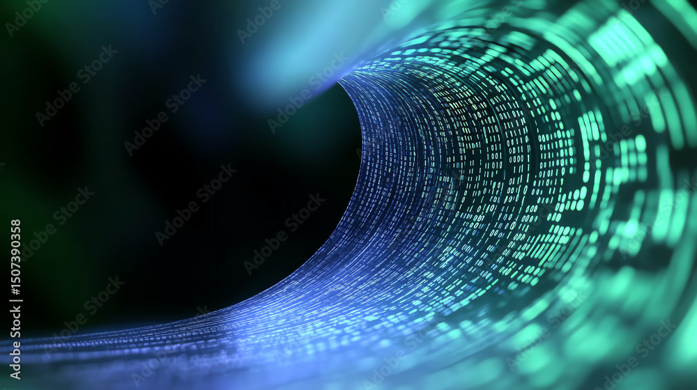 The watermark will not be included on Wall mural.: A futuristic tunnel of data, illustrated with flowing binary digits, representing the digital age an