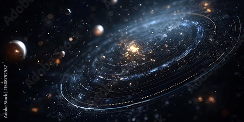 Wall mural a futuristic website layout with dynamic star backgrounds, interactive planetary orbits, and glowing - Wall murals Wall mural a futuristic website layout with dynamic star backgrounds, interactive planetary orbits, and glowing - Wall murals