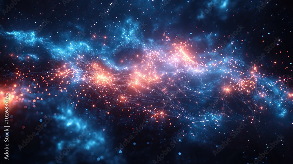 The watermark will not be included on Wall mural.: A generative ai collage showing connected lines on a cosmic background, representing a data network