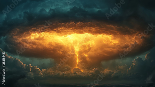 Wall mural a gigantic anvil-shaped thundercloud glowing from within, as if a firestorm rages inside