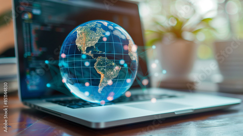 Wall mural a global data networking internet globe over a laptop global digital technology worldwide business n - Wall murals Wall mural a global data networking internet globe over a laptop global digital technology worldwide business n - Wall murals