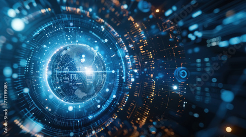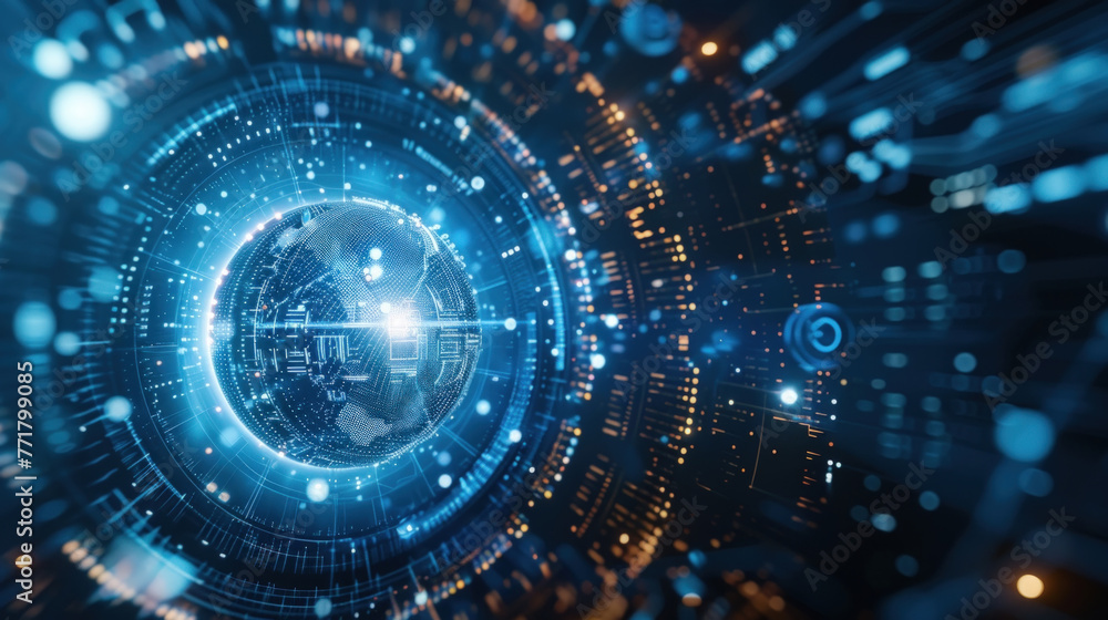 Wall mural a globe positioned at the center of a circular design, creating an abstract and geometric compositio