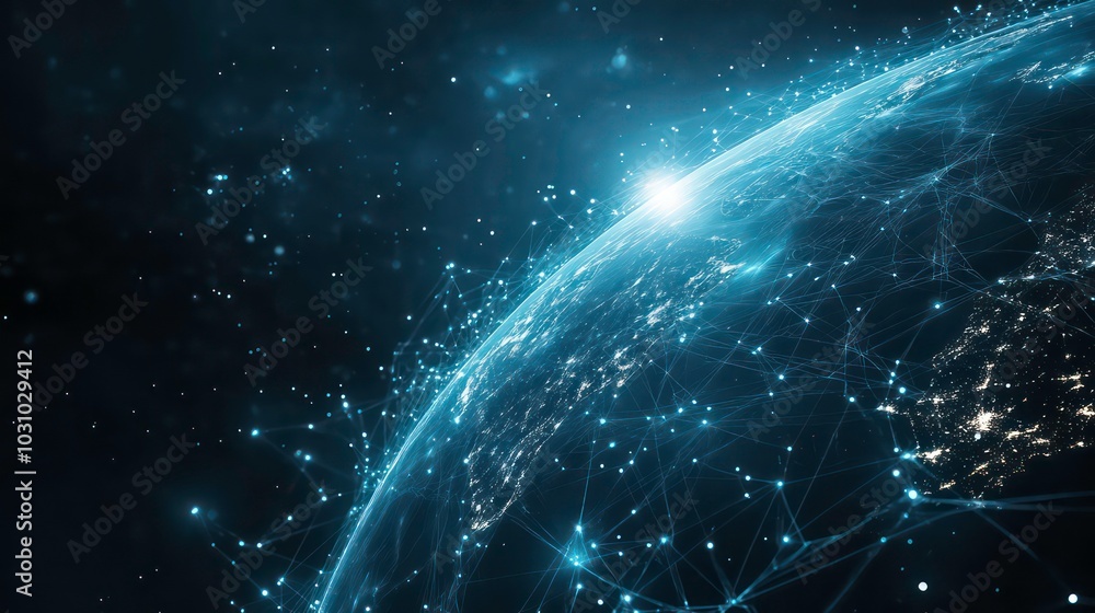 Wall mural a glowing, futuristic digital rendering of the earth with a network of glowing lines and points conn