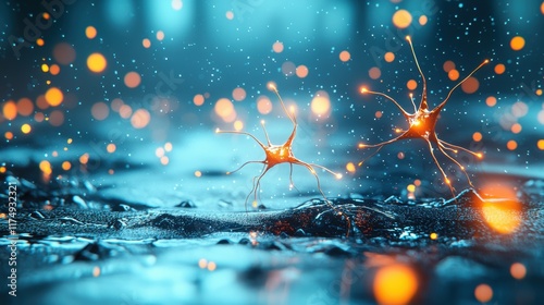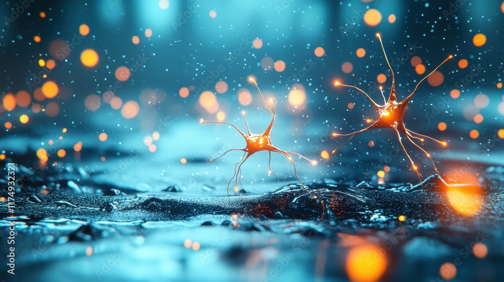 A glowing, interconnected network of artificial neurons forming a brain like structure, representingWall mural