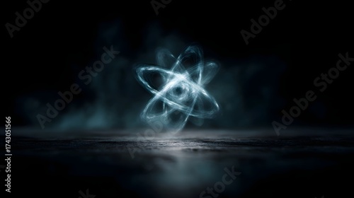 Wall mural : A glowing abstract atom symbolizing science and energy in a dark atmospheric environment