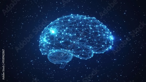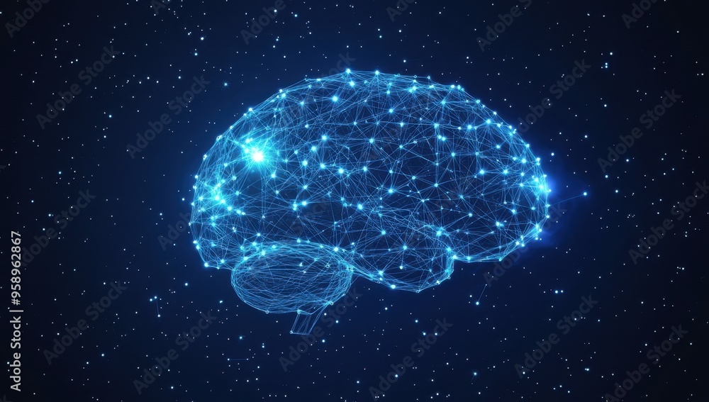 Wall mural a glowing brain made of interconnected nodes and lines, symbolizing artificial intelligence against