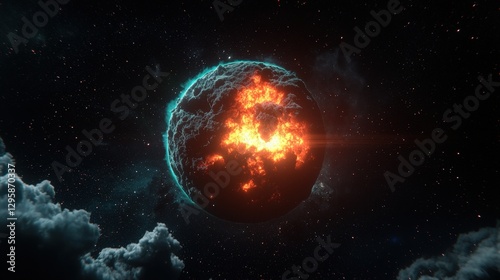 The watermark will not be included on Wall mural.: A glowing celestial body exploding in outer space with light