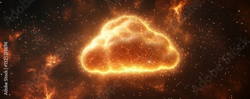 Wall mural : A glowing cloud symbol made of points of light and lines, representing cloud computing, on a backgro