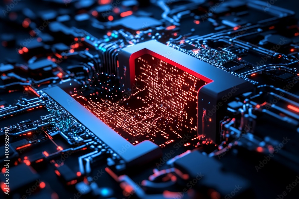 Wall mural a glowing digital firewall being breached by a hacker, with bits of data and code streaming through, - Wall murals Wall mural a glowing digital firewall being breached by a hacker, with bits of data and code streaming through, - Wall murals