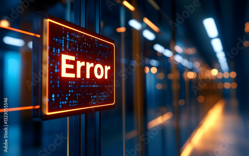 Wall mural a glowing error sign in a high-tech environment, highlighting digital issues in modern systems. perf