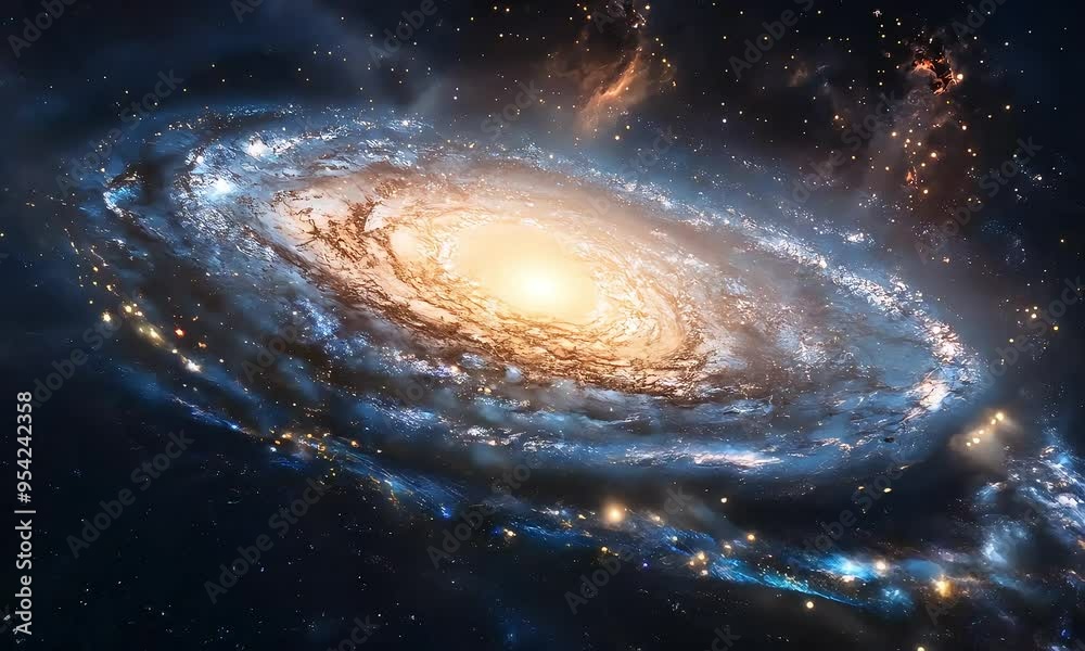 Wall mural a glowing galaxy with a bright core shines in the depths of space. - Wall murals Wall mural a glowing galaxy with a bright core shines in the depths of space. - Wall murals