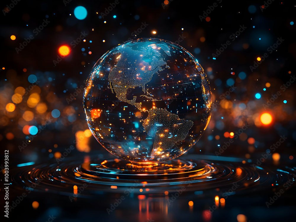 Wall mural a glowing globe surrounded by colorful particles, symbolizing global connection and technology in a  - Wall murals Wall mural a glowing globe surrounded by colorful particles, symbolizing global connection and technology in a - Wall murals
