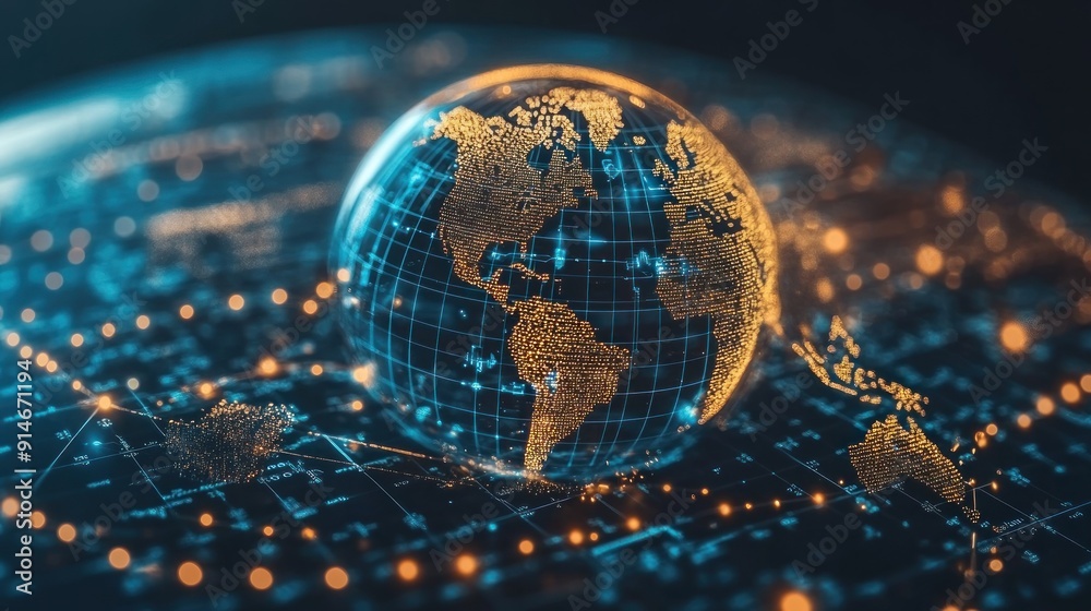 The watermark will not be included on Wall mural.: A glowing globe with a network of lines connecting it -