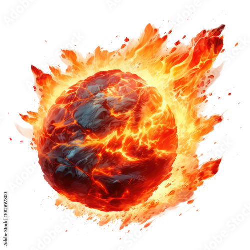 The watermark will not be included on Wall mural.: A glowing meteor with a tail of red-hot flames, isolated on transparent white background, clipping p