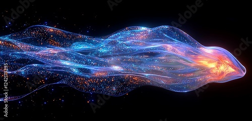 The watermark will not be included on Wall mural.: A glowing neon holographic wave, fluidly bending in an iridescent motion across the screen, with col