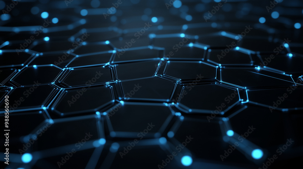The watermark will not be included on Wall mural.: A glowing network of interlocking hexagons, evoking high-tech connectivity and innovation -