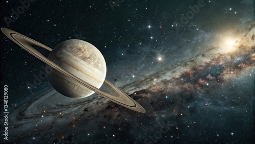Wall mural a glowing planetary disk levitating in an infinite cosmic void, surrounded by subtle star clusters a