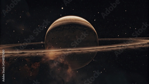 Wall mural a glowing planetary disk levitating in an infinite cosmic void, surrounded by subtle star clusters a
