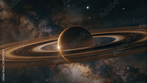 Wall mural a glowing planetary disk levitating in an infinite cosmic void, surrounded by subtle star clusters a