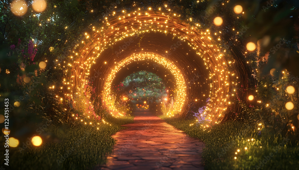 The watermark will not be included on Wall mural.: A glowing tunnel with vibrant lights creating a sense of motion and wonder at its center -