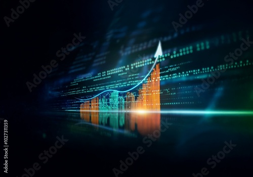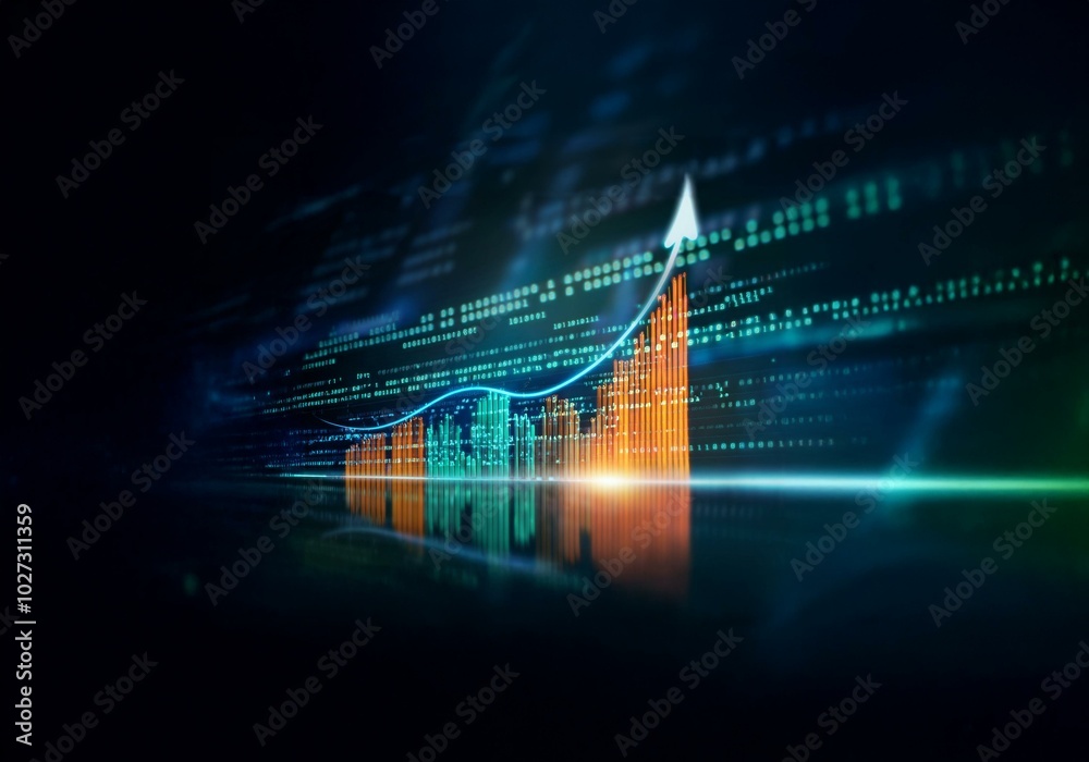 Wall mural a glowing upward arrow is embedded in a line graph, showing an upward trend. - Wall murals Wall mural a glowing upward arrow is embedded in a line graph, showing an upward trend. - Wall murals