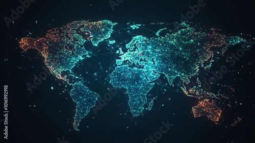 The watermark will not be included on Wall mural.: A glowing world map with interconnected lines and dots