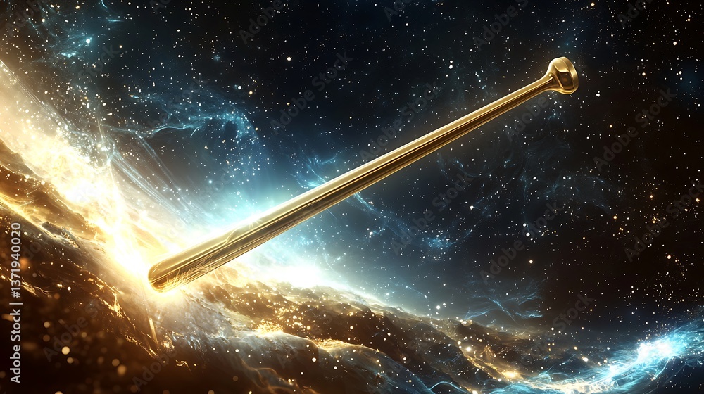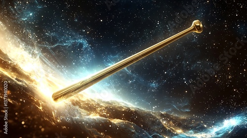 The watermark will not be included on Wall mural.: A golden object is floating in space, surrounded by a colorful