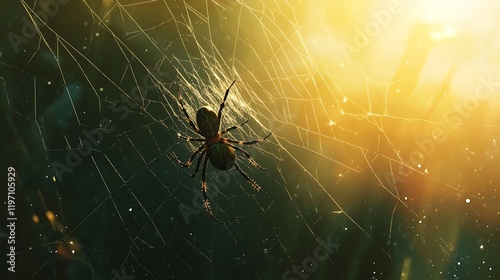 The watermark will not be included on Wall mural.: A golden orb-weaver spider with its striking web shimmering in the sunlight