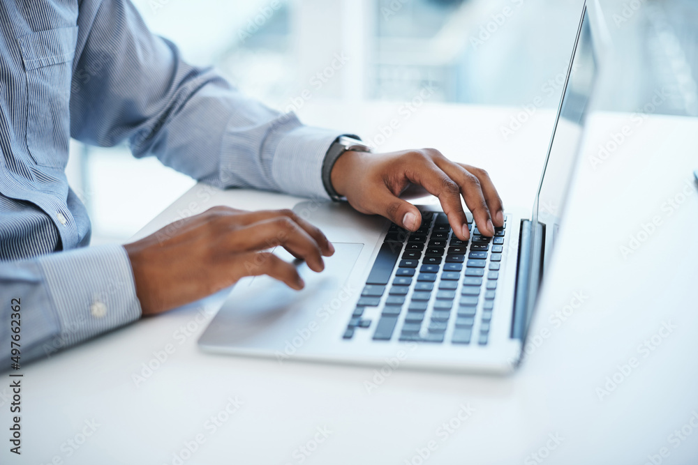 The watermark will not be included on Wall mural.: A good fibre connection produces good work - shot of a businessman using a computer in a modern offic