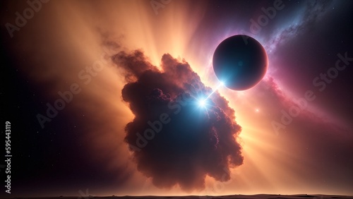 Wall mural : A gorgeous view of a planet in the sky with a bright light ai generative