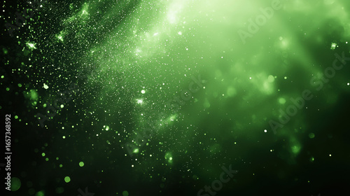 Wall mural : A green background with particles or elements randomly drifting in space -