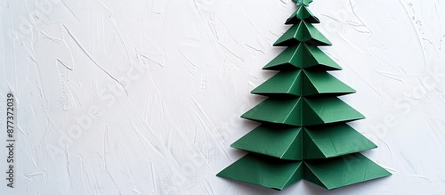 Wall mural a green craft paper christmas tree in origami style on a white background with ample copy space imag