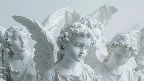 Wall mural a group of adolescent angels each with unique wings and expressions symbolizing growth and transform - Wall murals Wall mural a group of adolescent angels each with unique wings and expressions symbolizing growth and transform - Wall murals