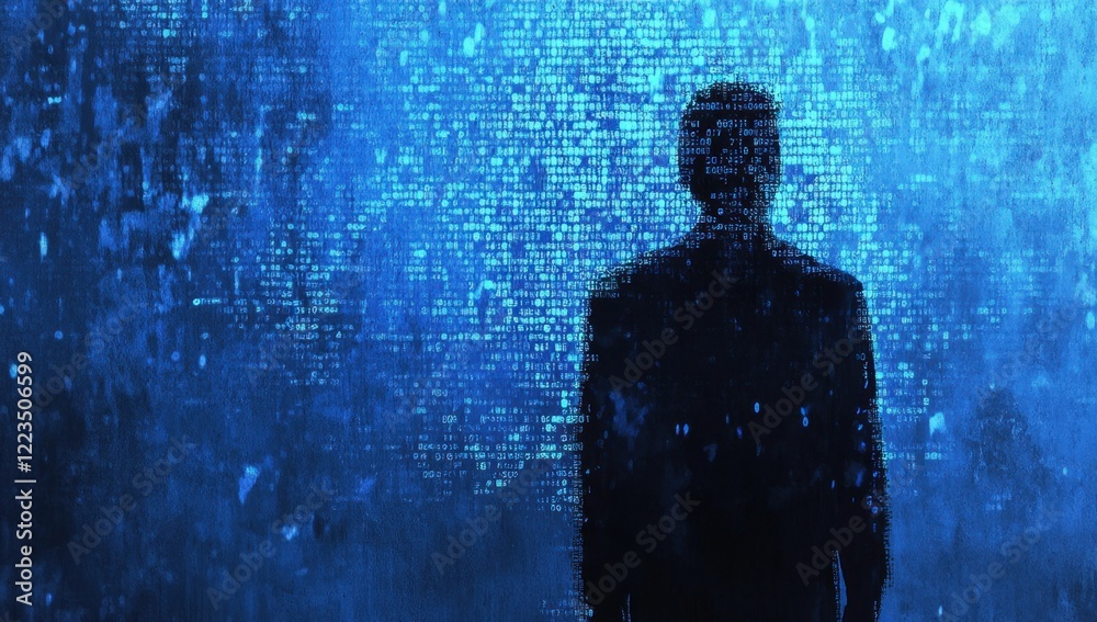 The watermark will not be included on Wall mural.: A hacker's silhouette on a computer screen, made of binary code generative ai