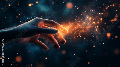 Wall mural a hand touching a glowing and abstract representation of the cosmos or space filled with stars and e - Wall murals Wall mural a hand touching a glowing and abstract representation of the cosmos or space filled with stars and e - Wall murals