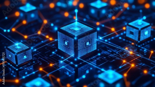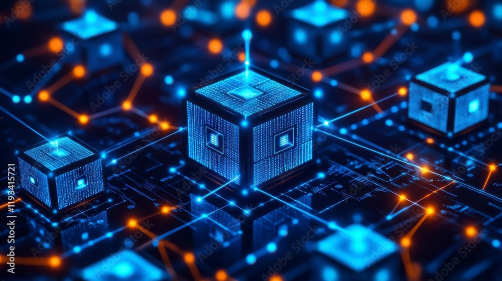 Wall mural : A high-tech, abstract design featuring big data code and flowing digital connections, symbolizing th