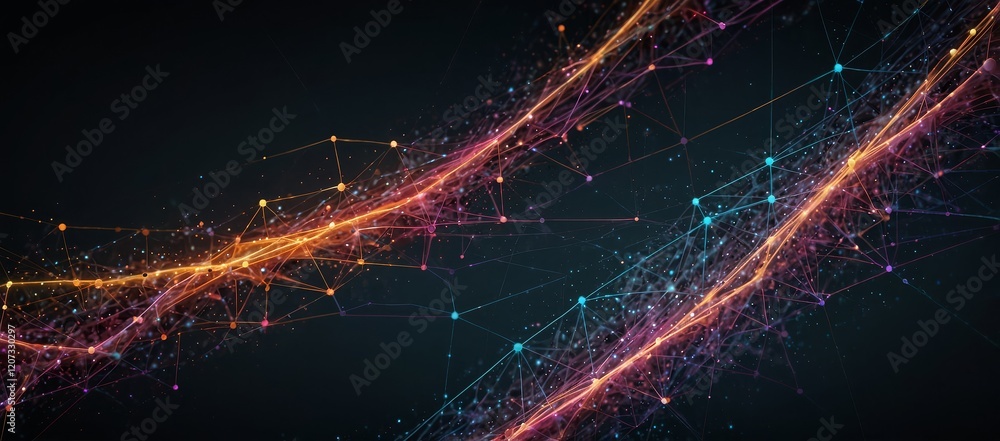 The watermark will not be included on Wall mural.: A high-tech abstract design of lines and dots forming a illustrating the complex connections
