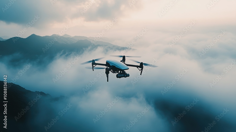 Wall mural : A high-tech ai-driven autonomous drone for high-resolution meteorological research, clean atmospheri