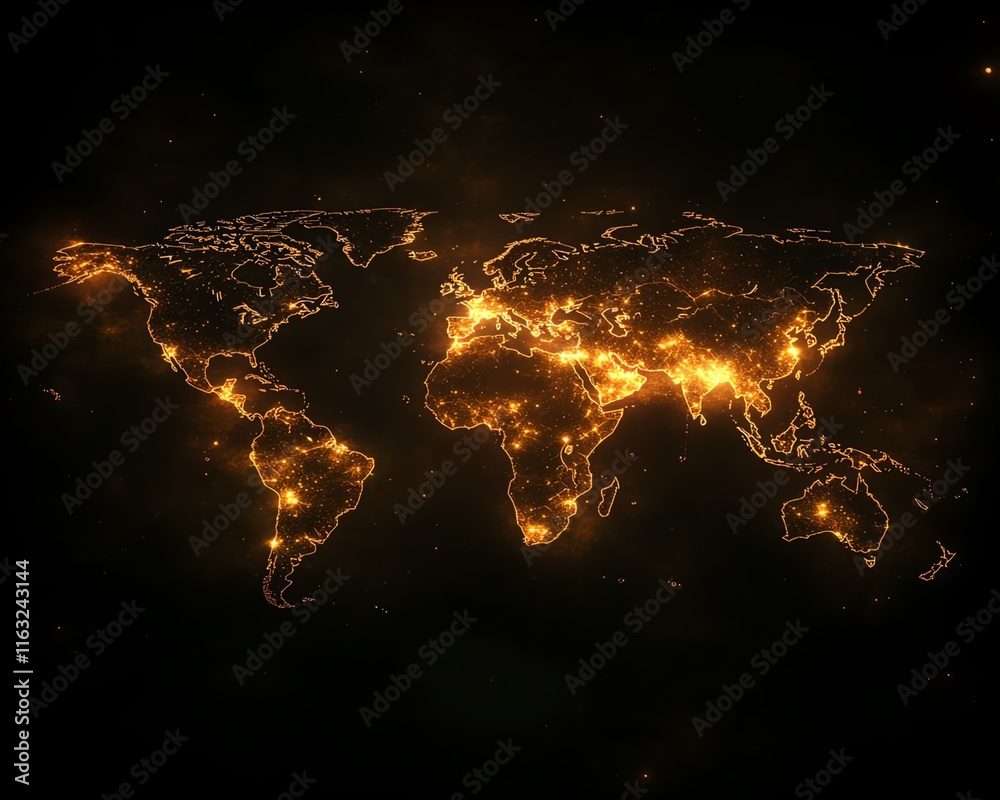 The watermark will not be included on Wall mural.: A hightech 3d design of a digital world map scheme with illuminated points and lines, symbolizing gl