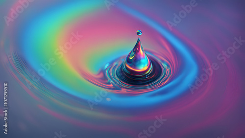 A holographic liquid drop bouncing on a smooth surface creating a beautiful wave of color, ai generaWall mural