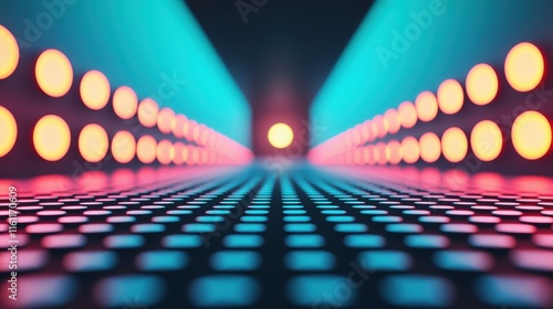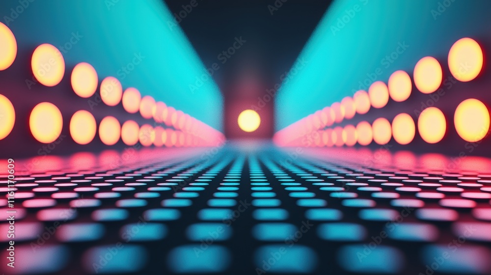 The watermark will not be included on Wall mural.: A hypnotic display of pulsating neon dots arranged in a grid formation, their rhythmic flashing crea