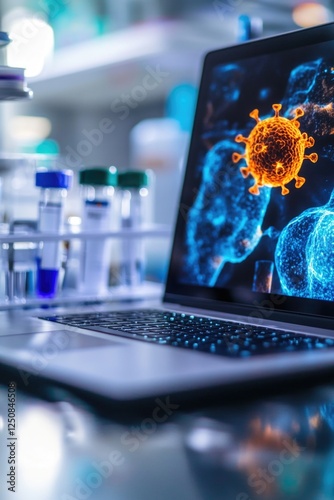 Wall mural a laptop computer placed on a table with a calm background - Wall murals Wall mural a laptop computer placed on a table with a calm background - Wall murals